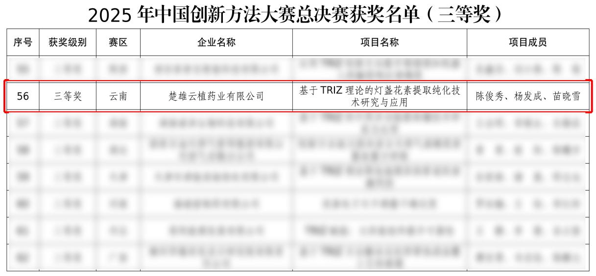 楚雄云植再次榮獲中國創新方法大賽全國總...